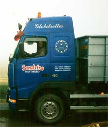 Van deze Scania zijn we weer overgestapt op het merk Volvo. Met een Volvo FH12 met een kabelsysteem hebben we grotendeels afval gereden voor Bas Kooy uit Rozenburg voor de AVR. De containers die we vervoerden waren perscontainers voor naar het stort en/of vuilverbranding. gesch3 In deze tijd kwamen de eerste charters ook voor Sandstra aan het rijden. Doordat het te druk was om al dit transport met 1 vrachtauto te doen. In die tijd werkten we samen met o.a. Germ Posthumus, Pieter Vellinga, Jan Boonstra, D.W. de Jong, Wouter Beitsma, R. Hibma, Durk van Vrieswijk en Hartog Baarn. Dit waren gouden tijden voor Sanstra Transport. Hier is een goede solide basis gelegd voor het bedrijf wat het tegenwoordig is.